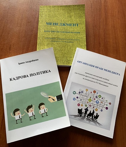 Викладачі кафедри менеджменту (завідувач кафедри, к.е.н., доцент В. Ю. Лисак, к.е.н., доцент І. А. Андрейцева, к.п.н., доцент Н. Ю. Олійник) презентують власні навчально-методичні доробки для забезпечення викладання навчальних дисциплін за 2020-2021 н.р.