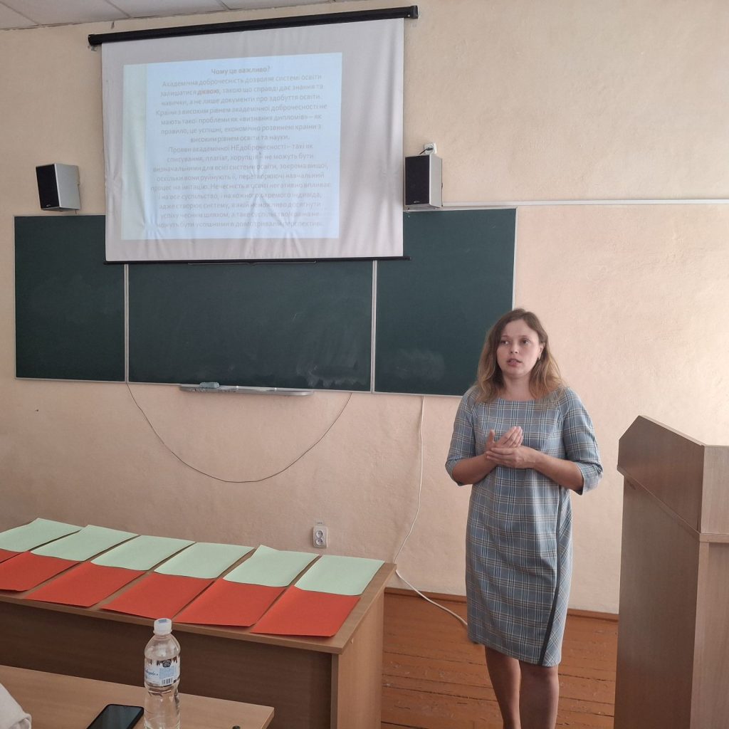 Окрему увагу Тетяна Леонідівна звернула на роботу Комісії з питань академічної доброчесності, яка функціонує в університеті. Серед її завдань – розгляд звернень щодо можливих порушень, підготовка пропозицій керівництву задля посилення політики доброчесності, а також проведення просвітницької роботи серед студентів і викладачів. Такі заходи мають системний характер і сприяють формуванню атмосфери довіри, взаємоповаги та чесності в університетському середовищі. Дотримання принципів академічної доброчесності є запорукою якісного освітньо-наукового процесу, розвитку критичного мислення й підготовки конкурентоспроможних фахівців.