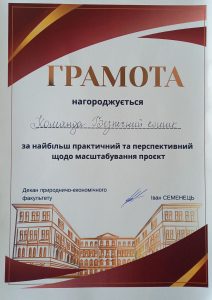 Презентований стартап засвідчив креативність мисленнздобувачів, вміння працювати в команді, застосовувати сучасні цифрові рішення та орієнтуватися на актуальні потреби споживачів. Участь у конкурсі стала для студентів важливою можливістю продемонструвати підприємницький потенціал, управлінські компетентності та навички публічної презентації власних ідей.