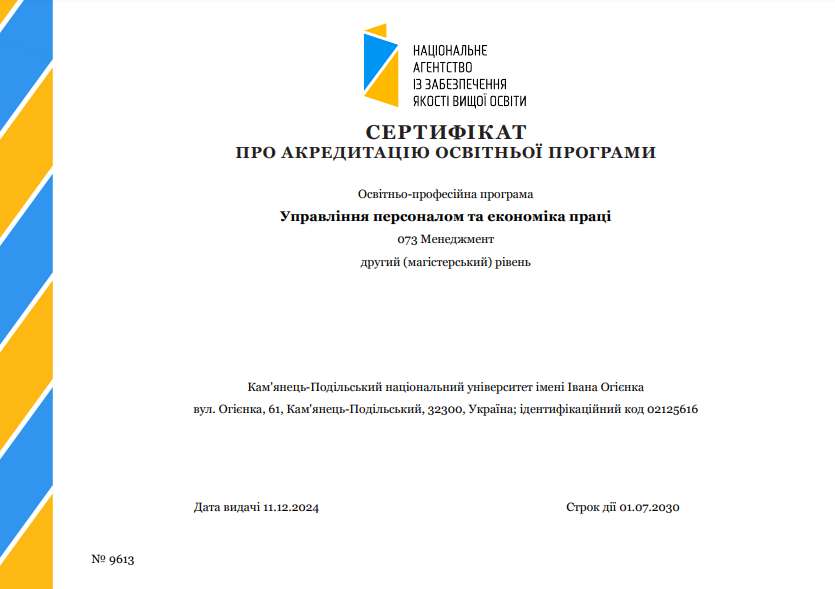 за освітньою програмою “Укравління персоналом та економіка праці”