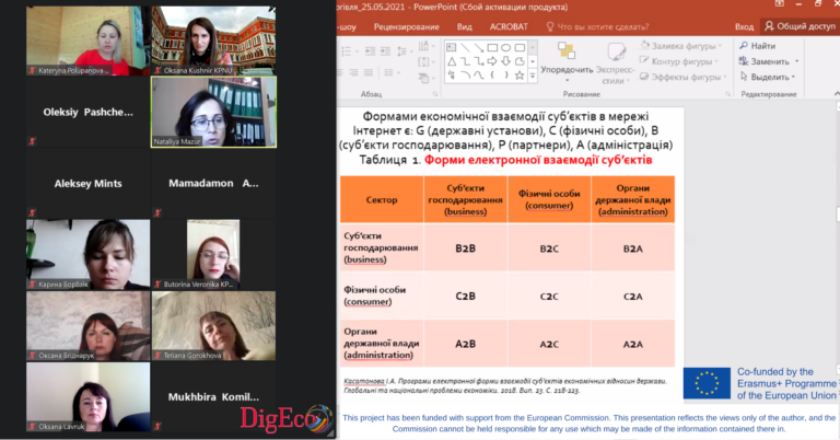 З листопада 2020 р. в межах ERASMUS+ project 618270-EPP-1-2020-1-LT-EPPKA2-CBHE-JP «Digitalization of economic as an element of sustainable development of Ukraine and Tajikistan (DigEco)» доцент кафедри менеджменту Лаврук О.С. співпрацювала з такими міжнародними партнерами: Університет Миколаса Ромеріса (Литва), Університет прикладних наук Гамбург (Німеччина), Університет Марібор (Словенія), Таджицький технічний університет імені академіка М. Осімі, Таджицький державний фінансово-економічний університет (Таджикистан).
