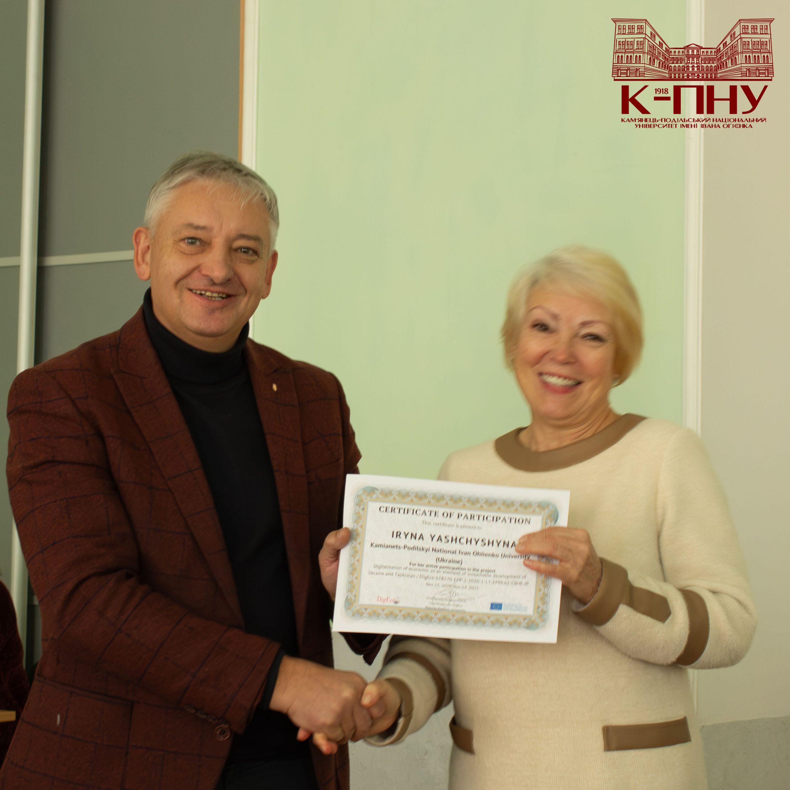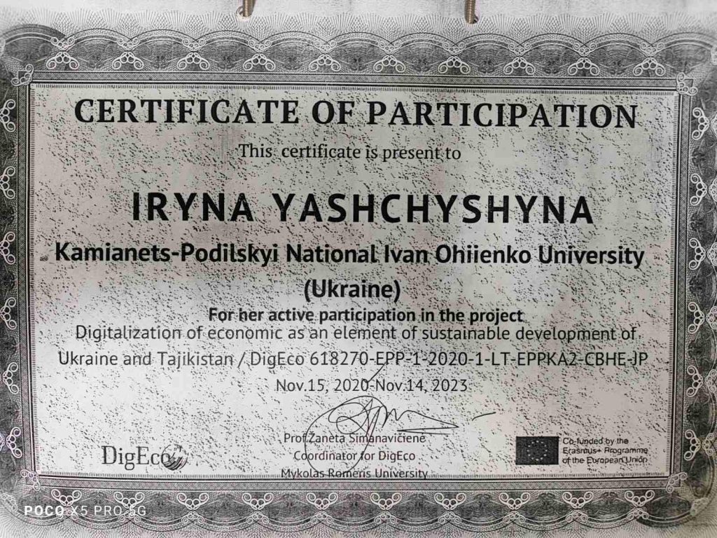Доцент кафедри Лаврук О.С. брала участь у Сrash–курсі «Цифрова економіка як елемент сталого розвитку підприємства» для організацій всіх форм власності, який проходив 21-23 серпня 2023 року в межах проєкту Програми ЄС Еразмус+ «Діджиталізація економіки як елемент сталого розвитку України та Таджикистану» (618270-EPP-1-2020-1-LT-EPPKA2-CBHE-JP) та засвоїла нові знання з цифрової економіки, удосконалила навички ефективного використання цифрових технологій.