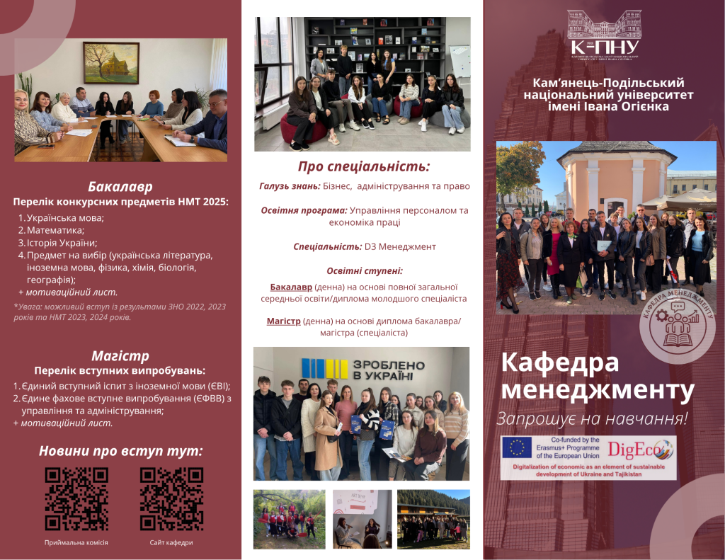 - Єдине фахове вступне випробування (ЄФВВ) з управління та адміністрування.